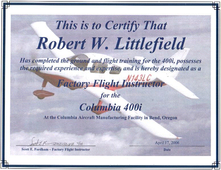 - Columbia Factory Flight Instructor (Avidyne & Garmin 1000)