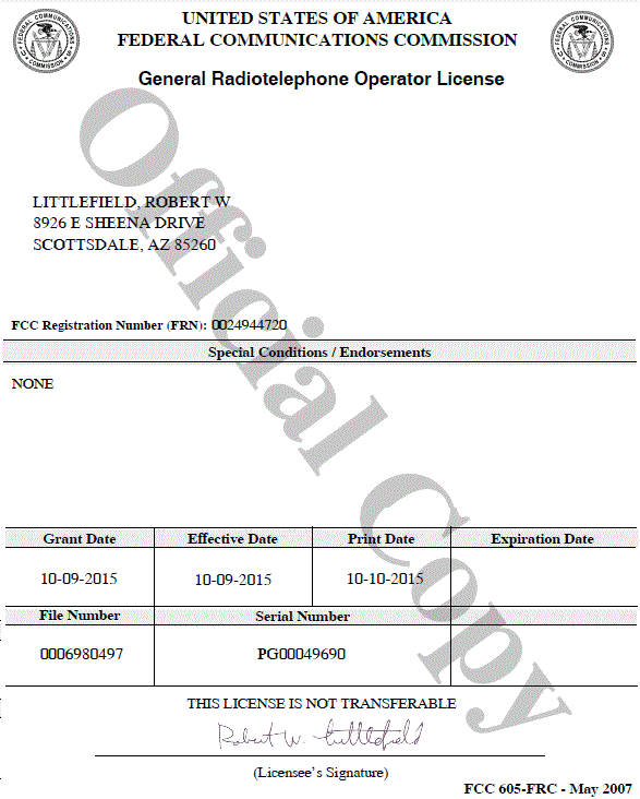 - FCC General Radiotelephone Operator License